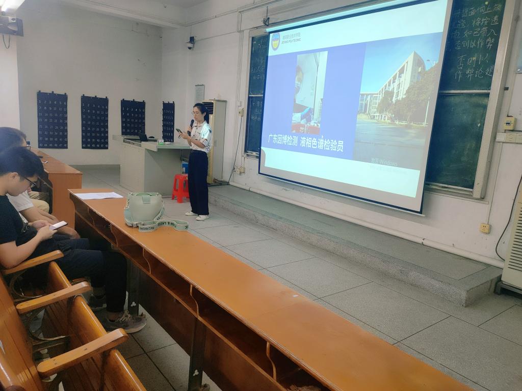 9月20日下午,邀请了李静雯、罗渺琴、郑利明、黄卓滋四位优秀毕业生,为食检231班和食检(3+证书)231班的新生做经验分享交流。李静雯同学现任青岛啤酒(揭阳)有限公司工艺质量工程师,罗渺琴同学现任广东东泰乳业有限公司检测中心检验员,郑利明同学现任广东加减乘除食品有限公司厂长,黄卓滋同学现任广东因博检测技术服务有限公司检验员。师兄师姐们从自己的学校生活、实习经历、毕业后的工作历程等几个方面与同学们分享,表达了对母校的感恩,追忆了在校求学时的美好时光,希望师弟师妹能够早日做好职业生涯规划,勇于坚持自己的梦想与目标,准确定位,珍惜时光,不负韶华,为将来的发展奠定坚实基础。在交流环节,新生们针对自身感兴趣的方面,积极向师兄师姐请教,比如食品工作岗位需要的素质能力、未来发展路径、升学途径等,氛围热烈,学生纷纷表示收获满满,对专业更有信心,也有了更清晰的目标。