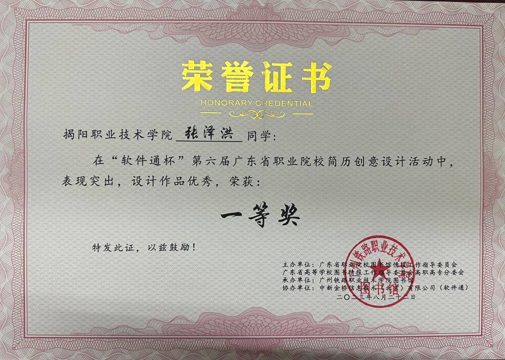 “软件通杯”第六届广东省职业院校简历创意设计活动是由广东省职业院校图书馆情报工作指导委员会、广东省高等学校图书馆情报工作指导委员会主办,由广州铁路职业技术学院图书馆承办,中新金桥信息技术(北京)有限公司协办,于2023年4月至6月期间开展,以“简而不凡·秀我风采”为活动主题,全省多所高校参加,竞争激烈。