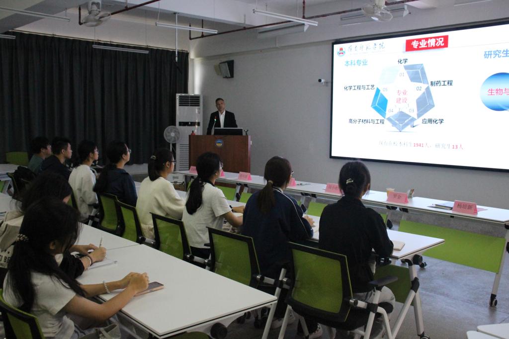 学生见面会上,周小松向学生详细介绍了化学化工学院国家特色专业建设、科研平台、科研成果、本科生继续深造等办学情况。同学们就转段考核、考研信息等积极交流提问,周院长一一给予详尽且富有建设性的解答,增强了学生的学习信心与动力。